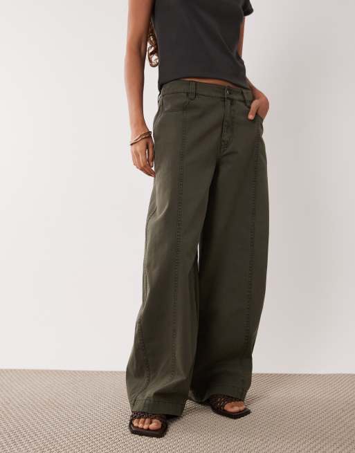 ASOS DESIGN Petite barrel leg pants in khaki green