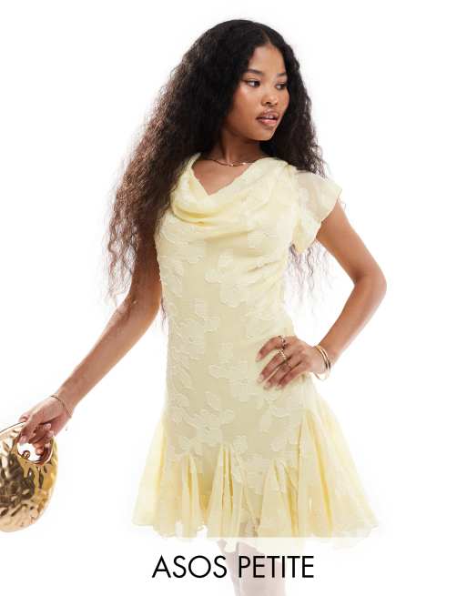 ASOS DESIGN Petite burnout cowl neck mini dress with godets in lemon yellow