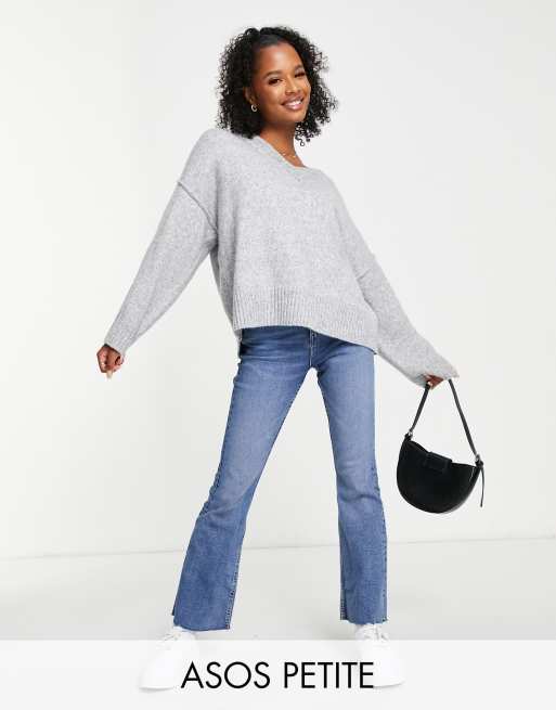 ASOS DESIGN Petite chunky V-neck sweater in gray