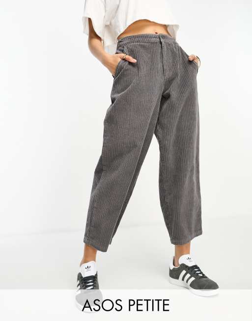 ASOS DESIGN Petite cord barrel leg pants in gray
