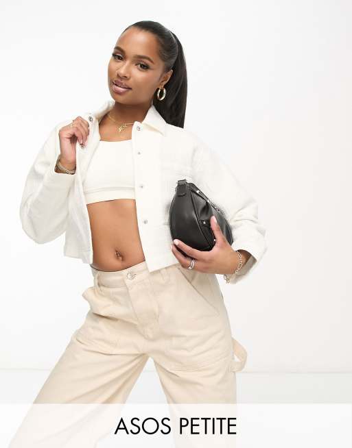 ASOS DESIGN Petite cropped textured shacket in white