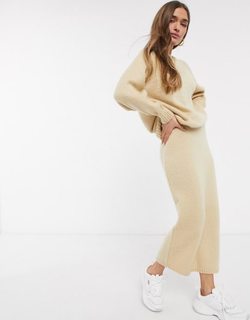 ASOS DESIGN Petite knitted sweater and skirt two-piece in cream