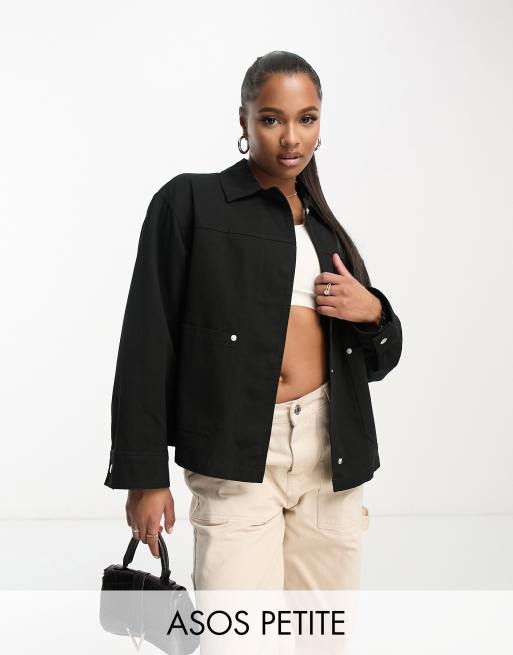 ASOS DESIGN Petite lightweight cotton pocket shacket in black