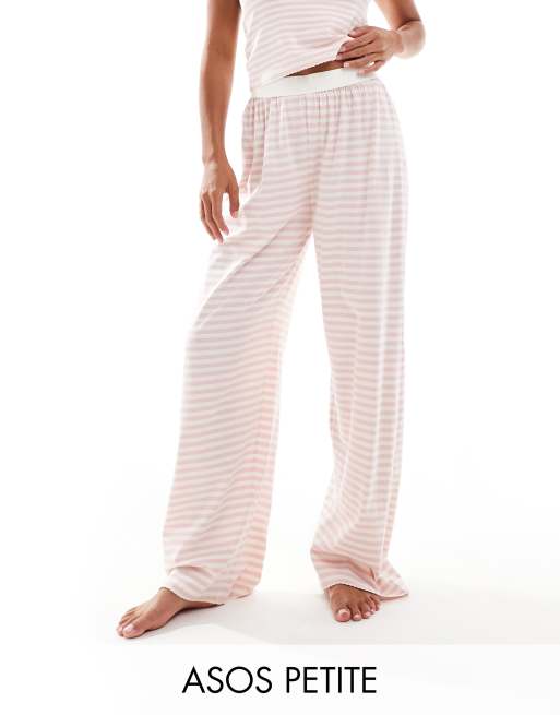 ASOS DESIGN Petite mix & match pajama pants with exposed waistband and picot trim in pink stripe