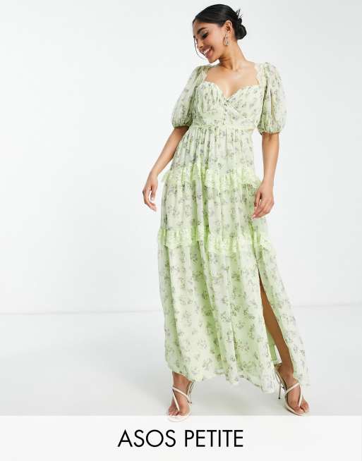 ASOS DESIGN Petite open back lace insert midi tea dress in green floral print