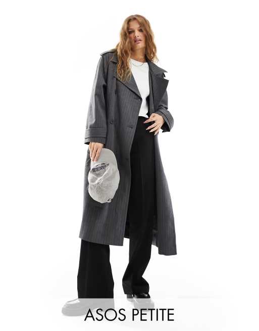 ASOS DESIGN Petite oversized pinstripe trench coat in gray