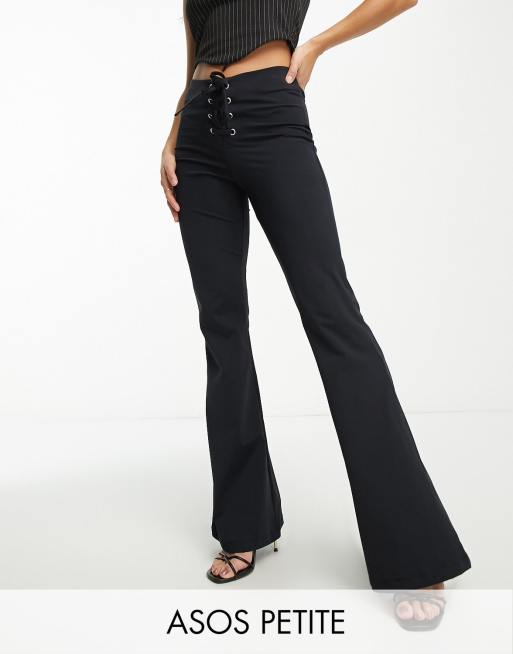 ASOS DESIGN Petite premium poly tricot lace up front flare pants in black