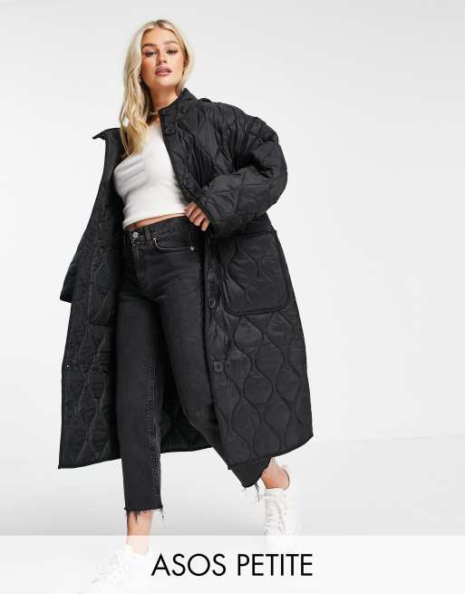 ASOS DESIGN Petite quilted longline hooded puffer jacket in black