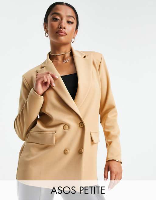 ASOS DESIGN Petite structured jersey double breasted blazer in camel