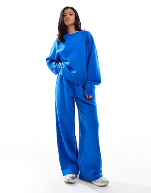 ASOS DESIGN Petite wide leg brushback sweatpants in blue