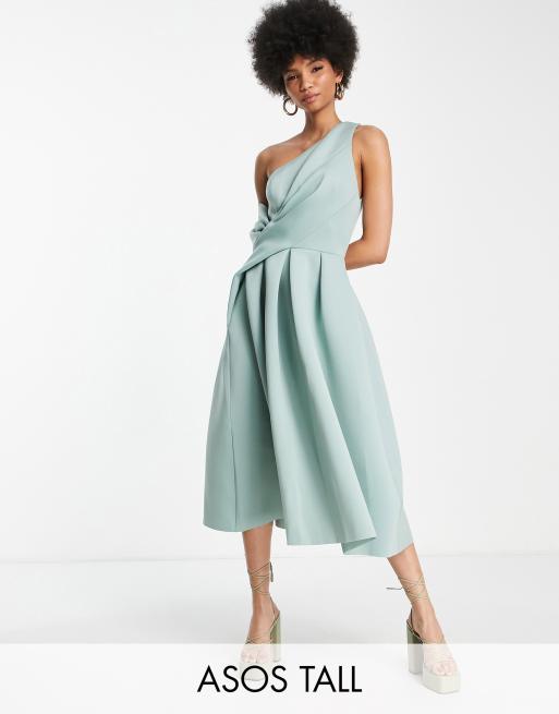 ASOS DESIGN Tall bare shoulder midi prom dress in frosty sage