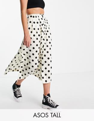 ASOS DESIGN Tall button up midi skirt with deep pocket detail in cream & black spot print