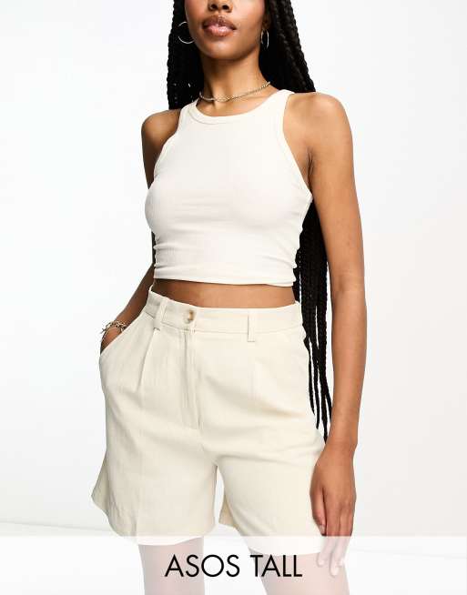 ASOS DESIGN Tall dad short with linen in stone