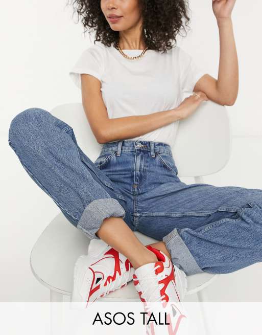ASOS DESIGN Tall high rise 'slouchy' mom jean in midwash