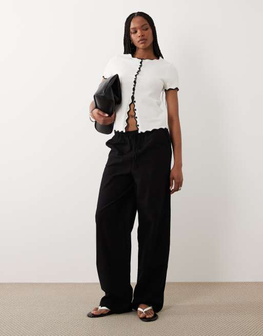 ASOS DESIGN Tall linen look pull on pants in black