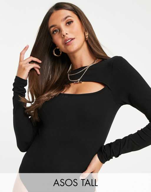 ASOS DESIGN Tall long sleeve bodysuit with cut out in black