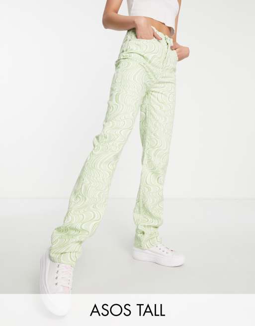 ASOS DESIGN Tall mid rise straight jeans in green swirl print