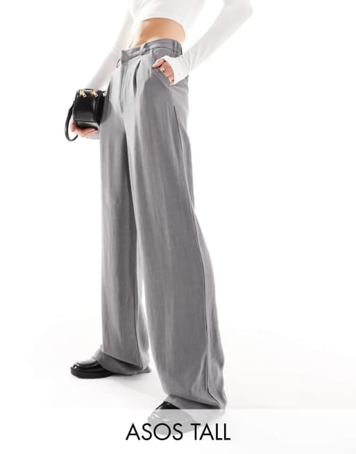 ASOS DESIGN Tall relaxed straight leg linen blend pants in gray