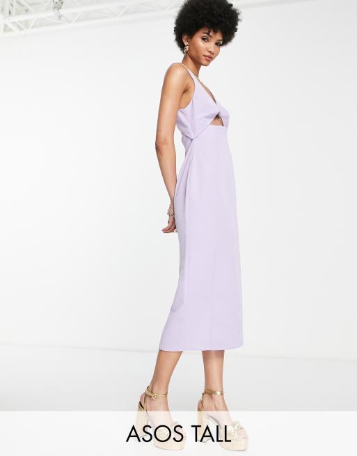 ASOS DESIGN Tall structured midi dress with twist front bodice in lilac