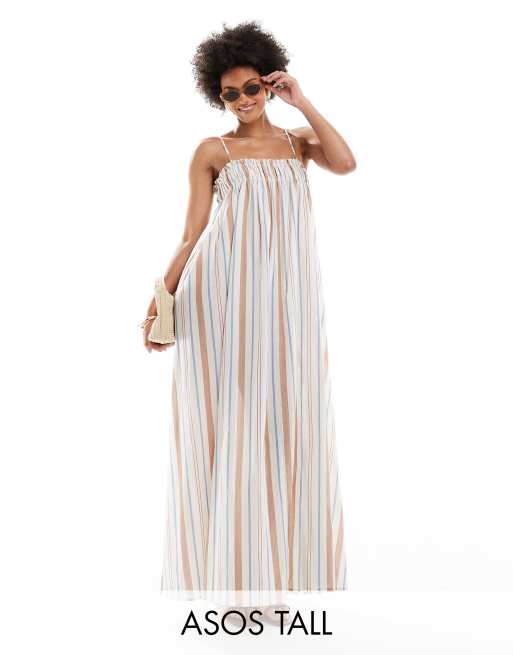 ASOS DESIGN Tall trapeze beach dress in multi stripe