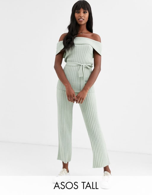 ASOS DESIGN Tall two-piece bardot knitted top & culottes