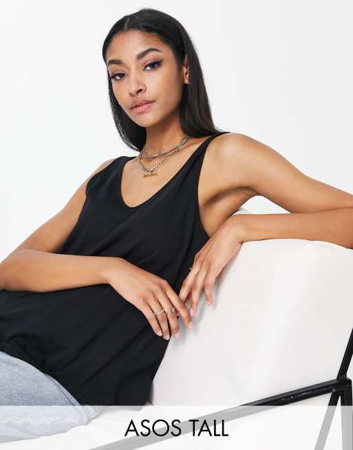 ASOS DESIGN Tall ultimate tank top with scoop neck in cotton in black - BLACK