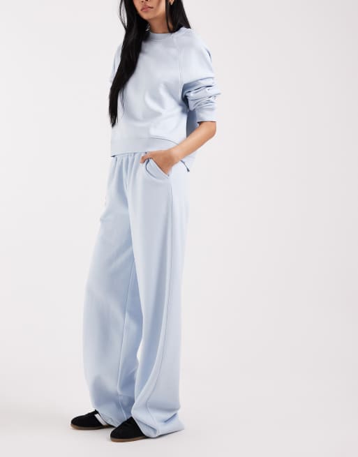 ASOS DESIGN Tall wide leg brushback sweatpants in baby blue