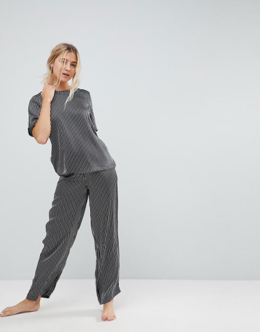 ASOS Mono Stripe Satin Pajama Tee and PANTS Set