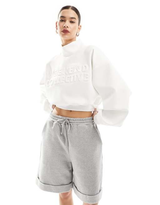 ASOS DESIGN Weekend Collective embossed high neck scuba sweatshirt in white
