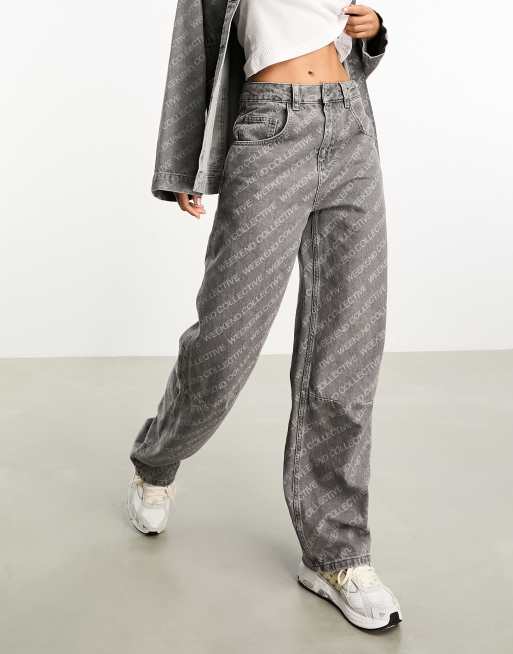 ASOS Weekend Collective baggy fit jeans with laser print in washed gray - part of a set