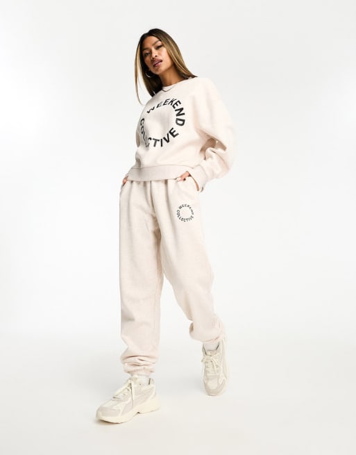 ASOS Weekend Collective set with black logo in oatmeal heather