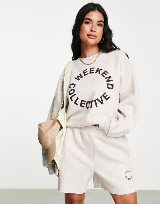 ASOS Weekend Collective sweatshirt & shorts with round logo in oatmeal
