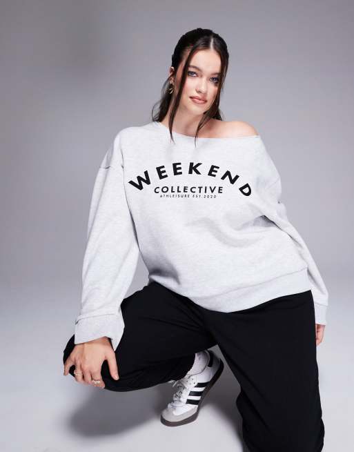 Weekend Collective Curve relaxed off shoulder sweatshirt in ice heather