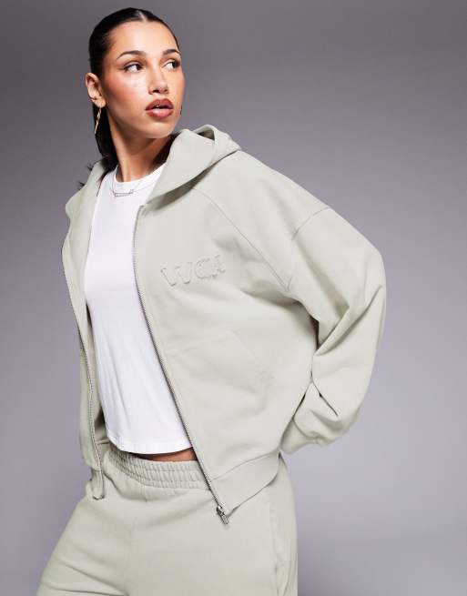 Weekend Collective heavyweight zip up hoodie in washed sage green - part of a set