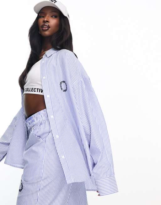 Weekend Collective oversized striped shirt in blue and white - part of a set