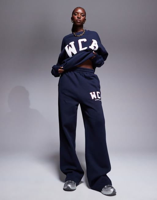Weekend Collective oversized sweatpants with varsity logo in navy - part of a set