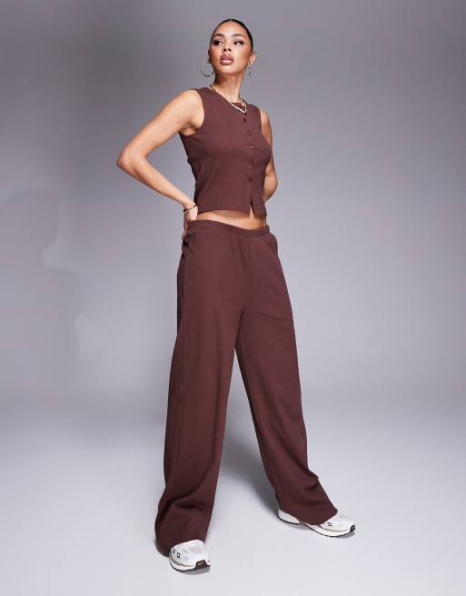 Weekend Collective ribbed sleeveless button top and pants set in chocolate