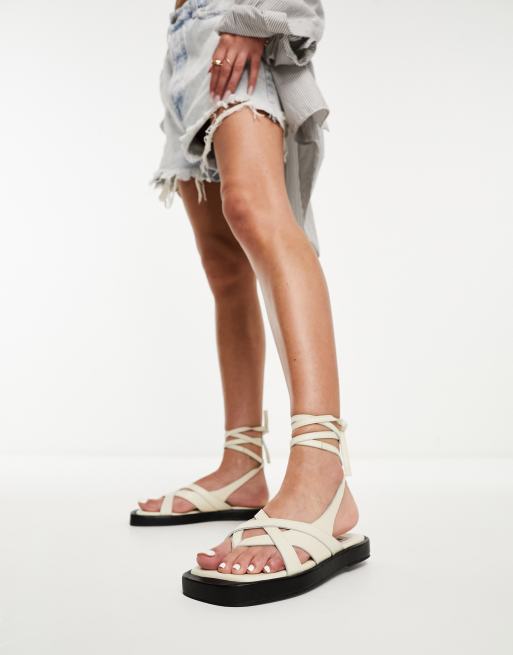 ASRA Enzo cross strap sandals with toe loop in icing leather