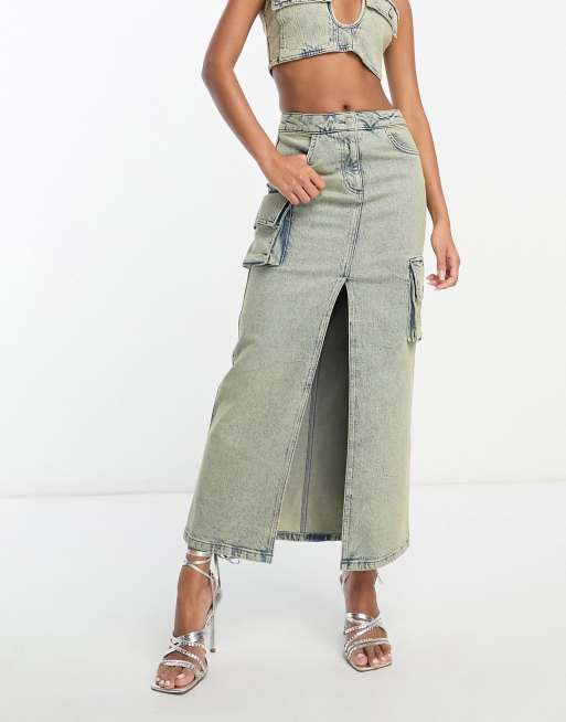 ASYOU cargo midaxi skirt in dirty wash - part of a set