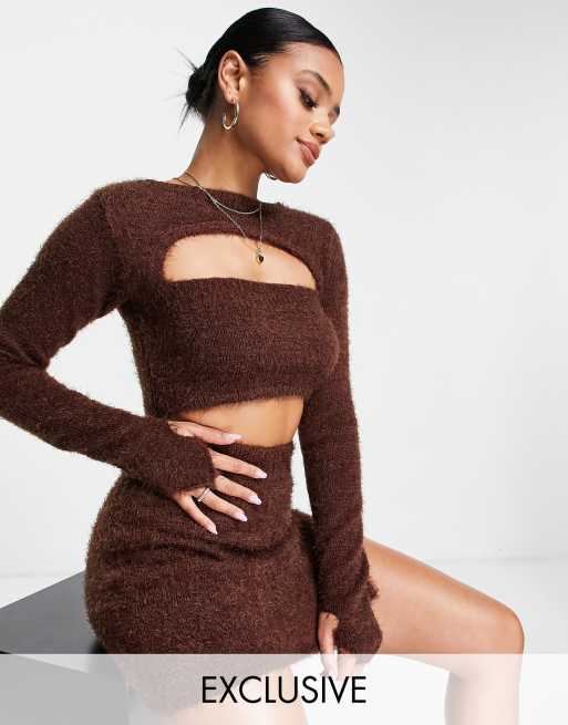 ASYOU peekaboo knitted shrug in brown - part of a set