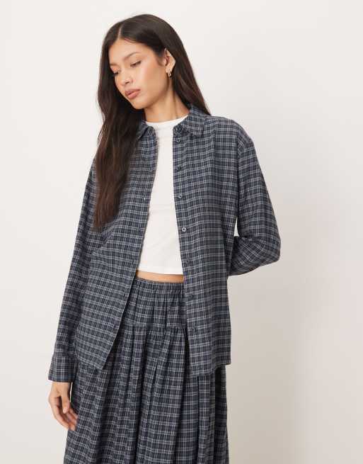 AWARE oversized boyfriend fit oxford shirt in blue and teal mini check print