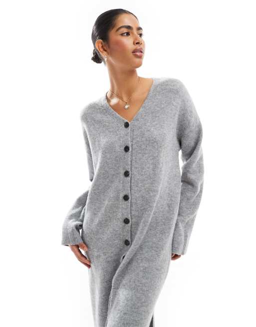 VERO MODA AWARE button down knit maxi dress in light gray melange