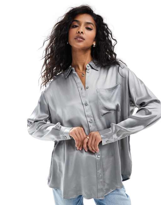 VERO MODA AWARE oversized satin shirt in light gray