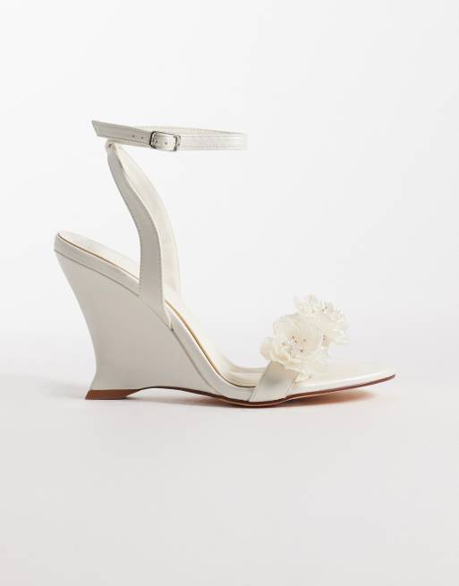 Azalea Wang Winters wedge sandals with flowers in white satin
