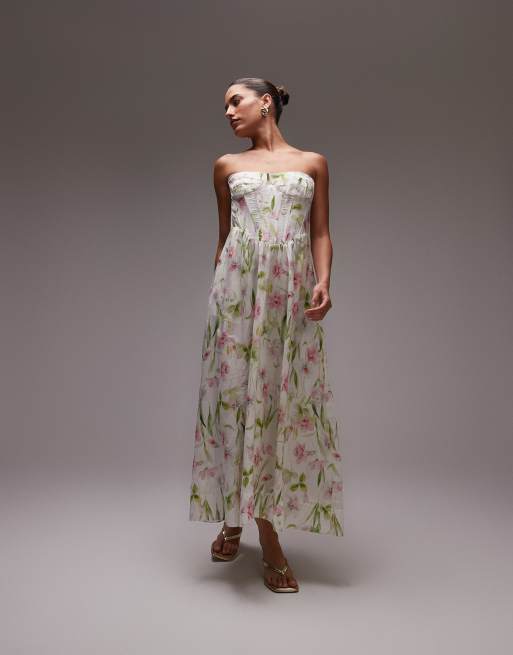 Bardot corset midi dress in summer white floral