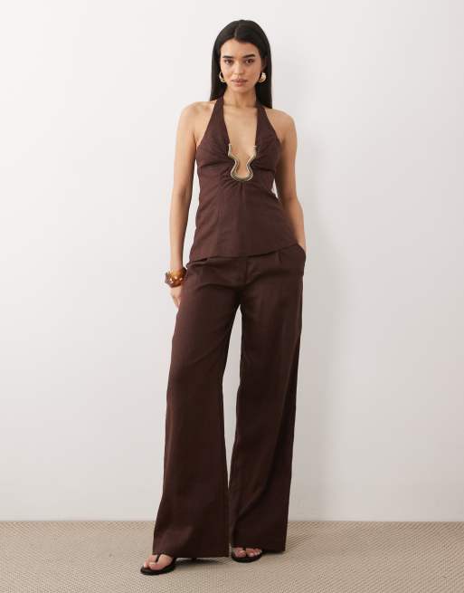 Bardot Geordy hipster linen pants in chocolate - part of a set