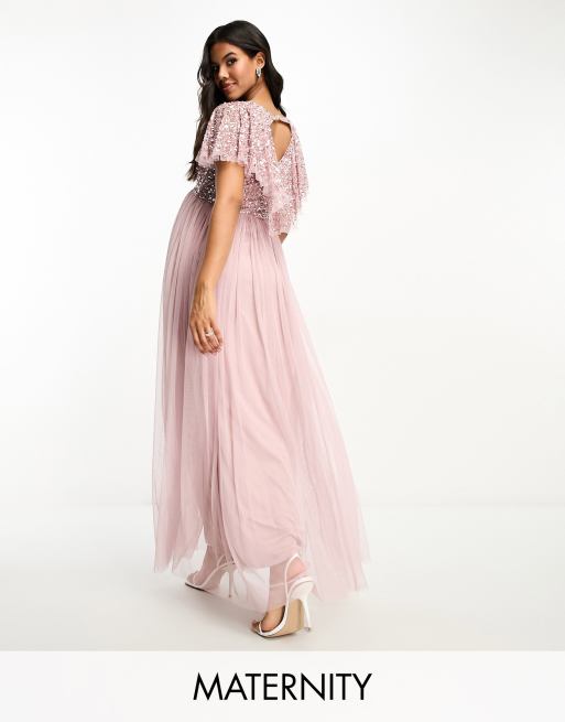 Beauut Maternity Bridesmaid embellished maxi dress with flutter detail in frosted pink