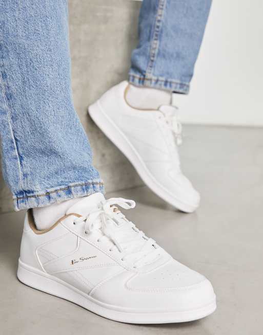 Ben Sherman minimal lace up sneakers in white with gold lining