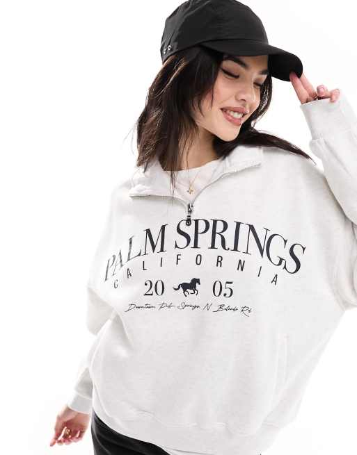 Bershka 1/4 'Palm Springs' sweatshirt in gray