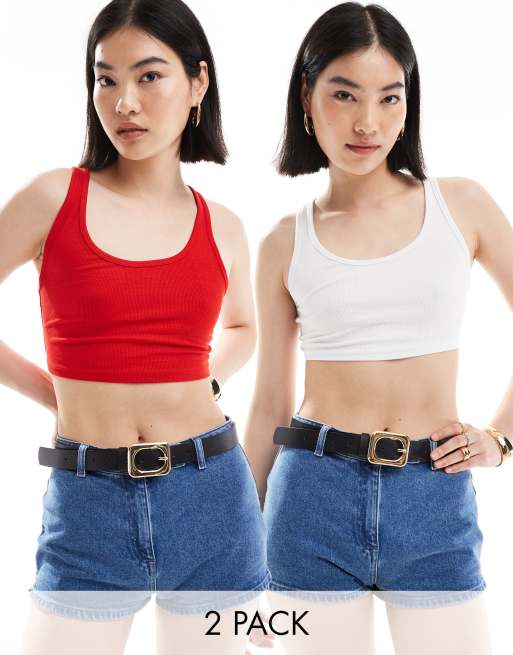 Bershka 2-pack scoop neck tops in red & white